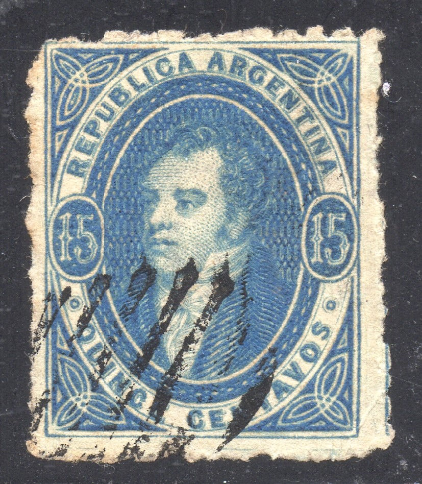 Rivadavia 1864 15 cents blue GJ# 24 good used
